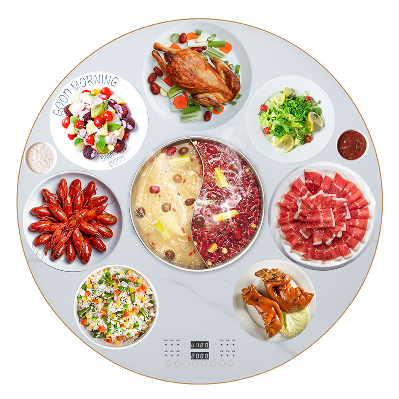 暖菜板电动转盘火锅白色仿岩板NA2-80DB